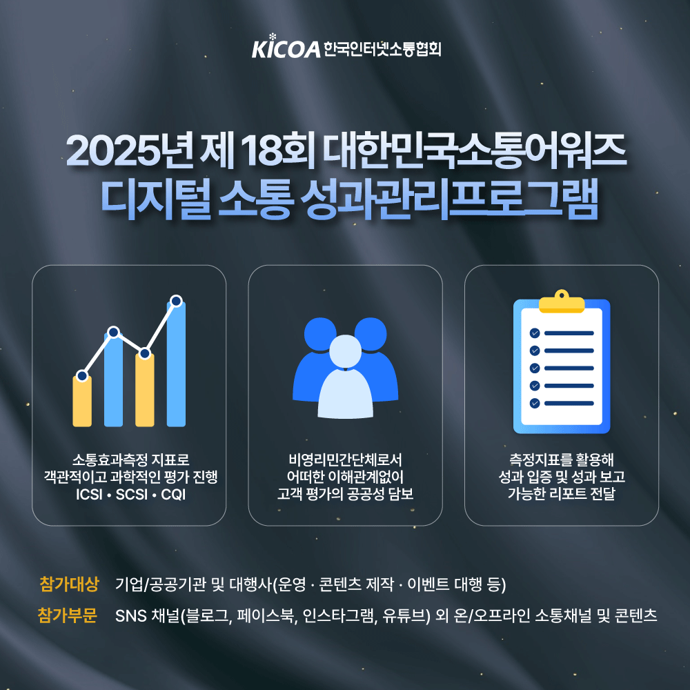 제18회 대한민국소통어워즈는 디지털 소통 성과관리프로그램으로 진행됩니다
